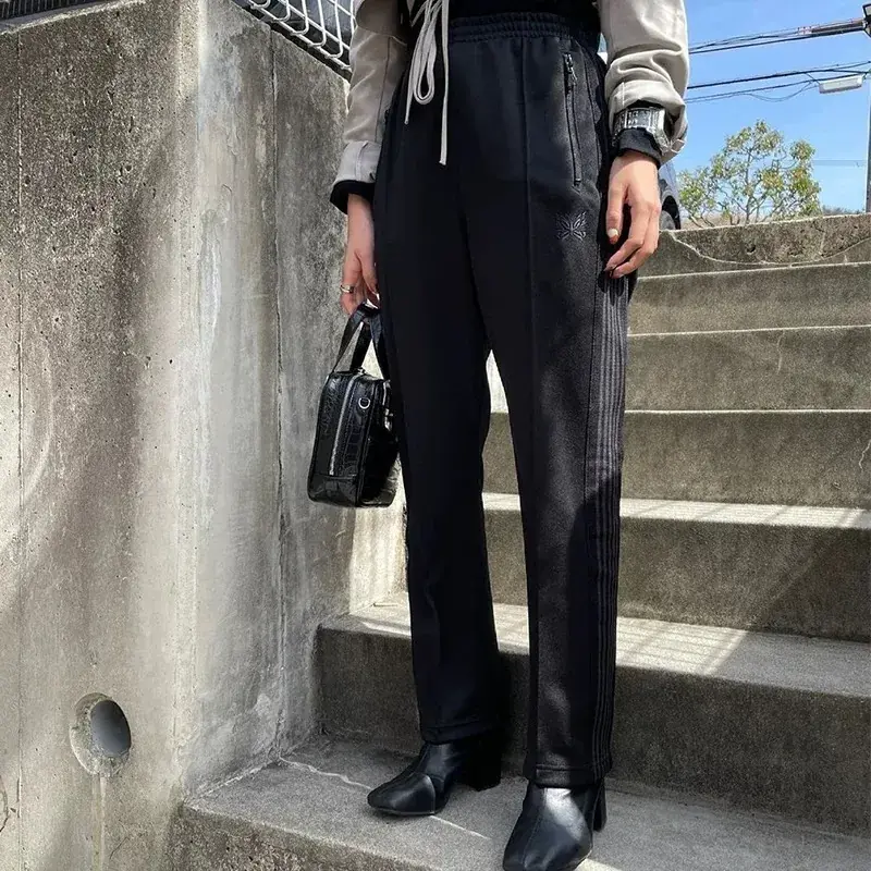 Needles 21SS 蝴蝶刺繡 復古織帶 休閒褲 直筒褲 運動褲 全黑 黑魂