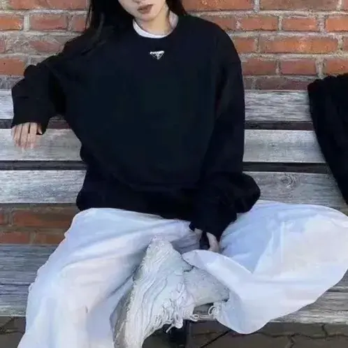 PRA 23FW 素色簡約 三角標小logo 鐵牌 大學T圓領衛衣長袖