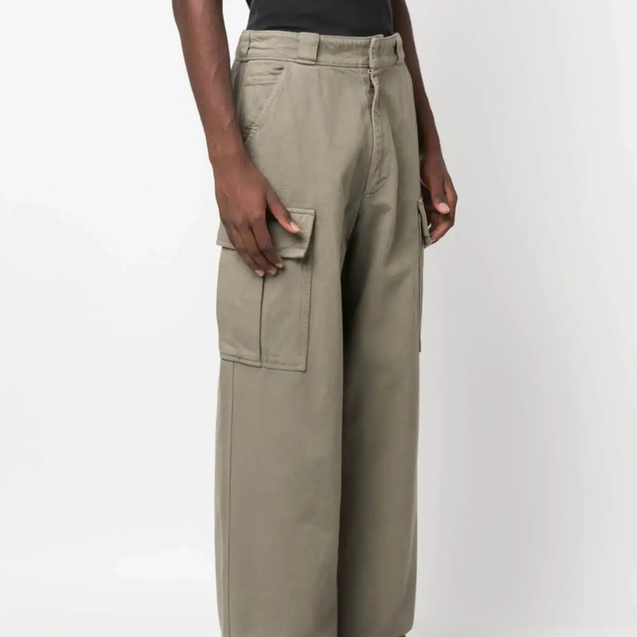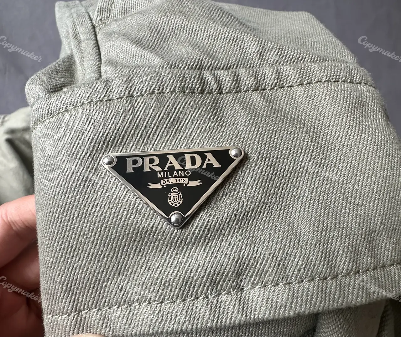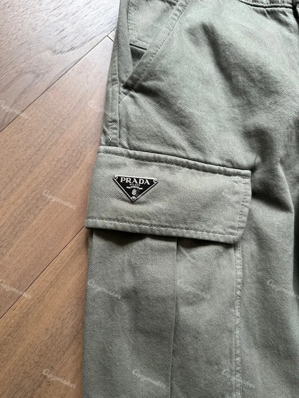 PRA 24SS 素色簡約 三角標小logo 水洗寬鬆口袋工裝褲長褲 橄欖綠