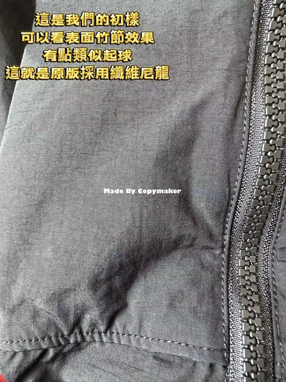 在尼龍面料上會有一條條的竹節紋路,