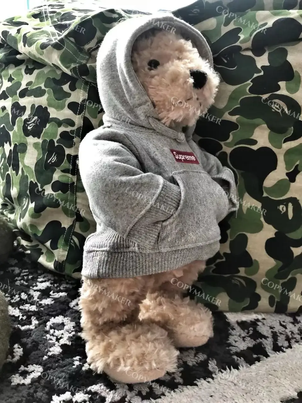 SUP x Steiff 18Fw Boxlogo 泰迪熊玩偶毛絨公仔 帽T熊