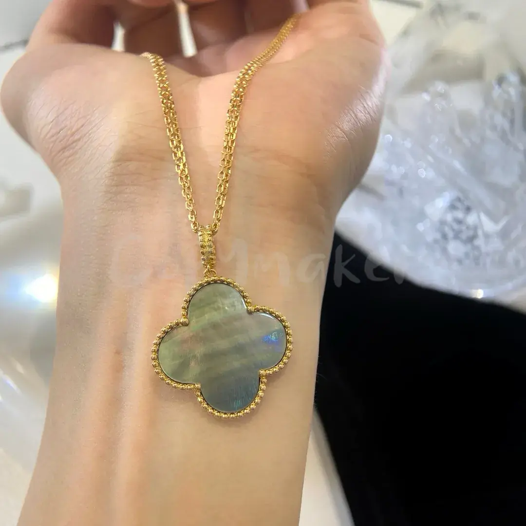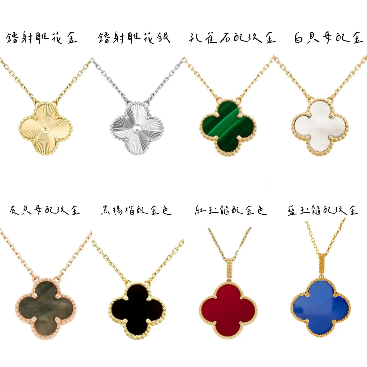 VCA 梵克雅* Alhambra 四葉草 貝母 瑪瑙 孔雀石 雷射 項鍊掛飾 V金